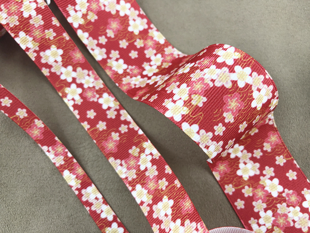 經典傳統日本京都風彩畫,帶出皇室貴族金線的應用與櫻花穿落期間的細緻氛圍,漸層全彩印刷/羅紋緞帶