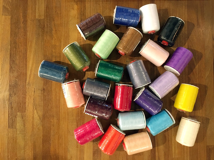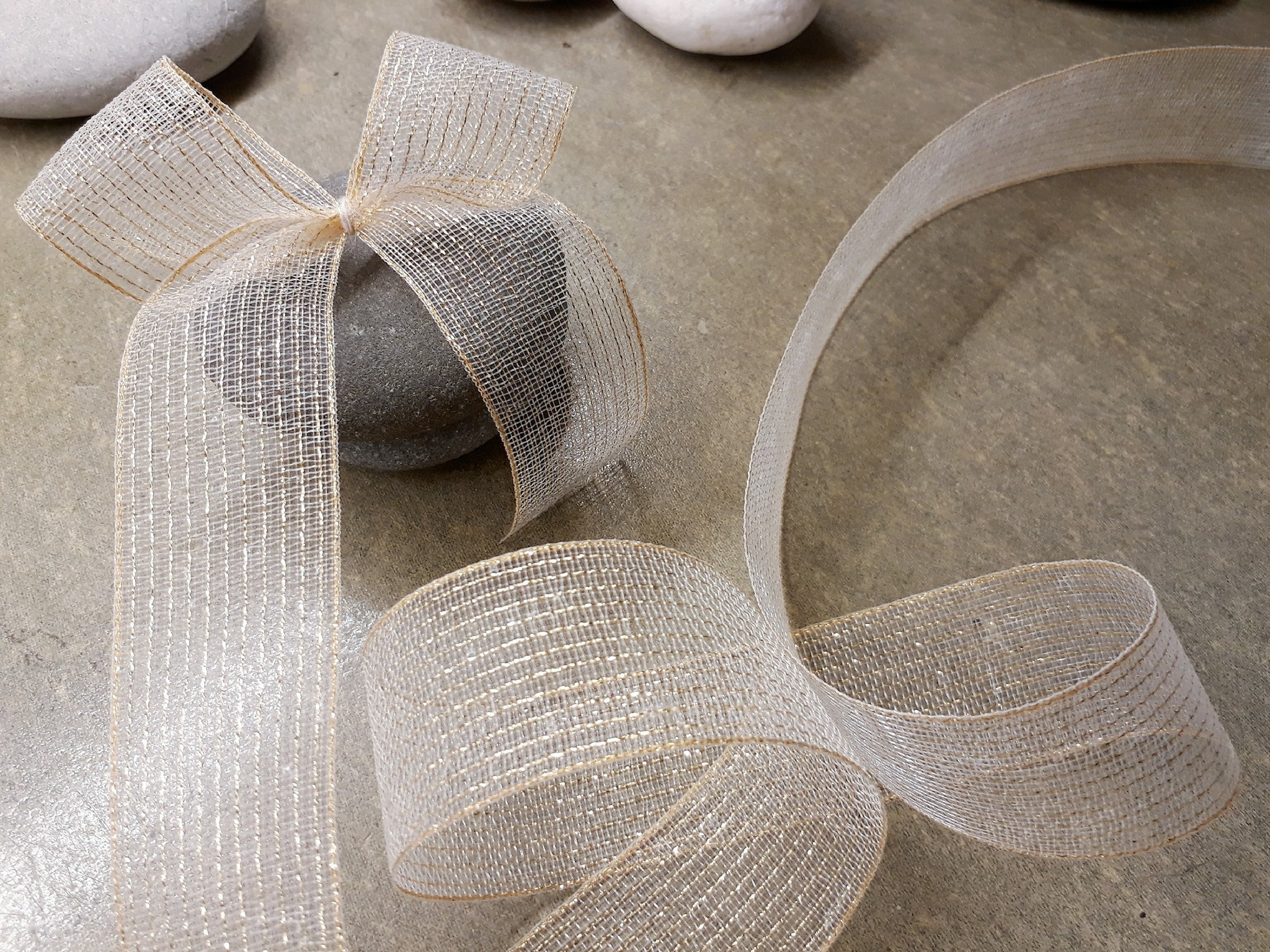 利用拷克線有些許彈性的特性,適合用來纏繞並固定緞帶等布料素材