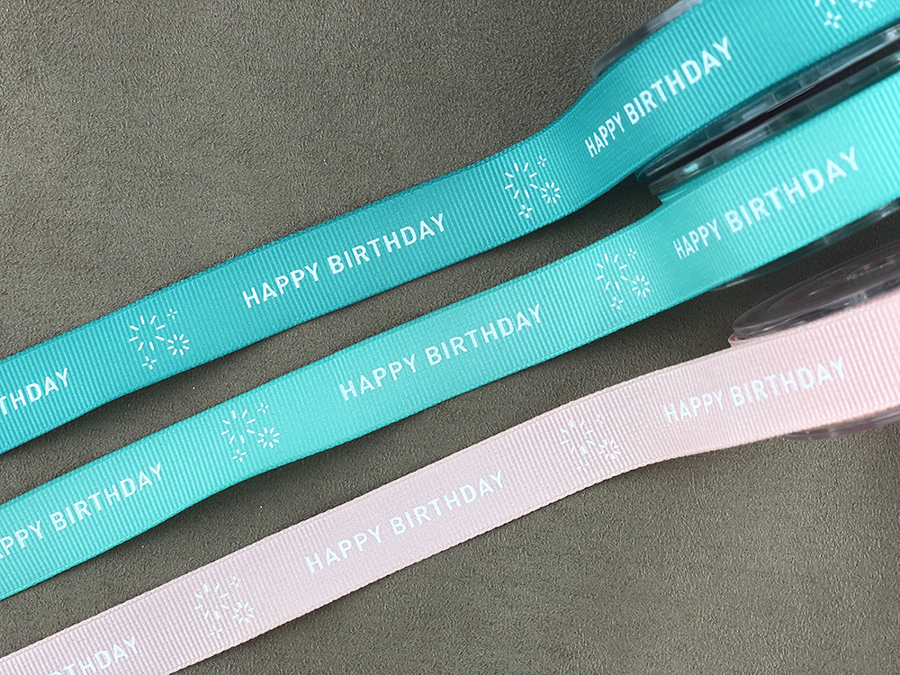 羅紋緞帶上面印上黑體字樣的HAPPY BIRTHDAY